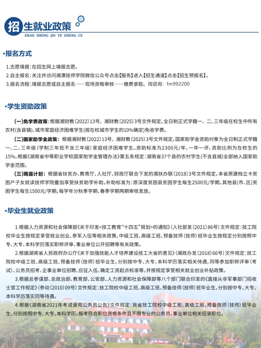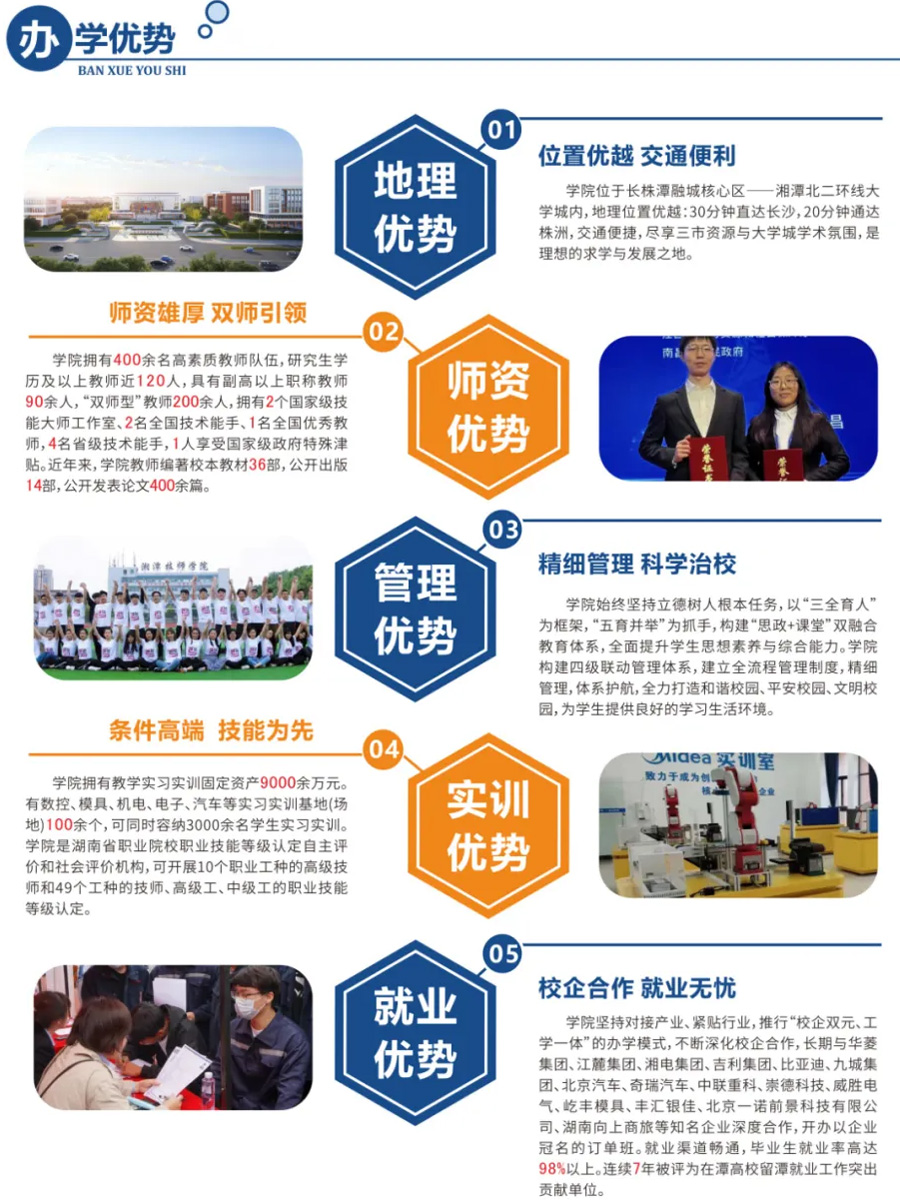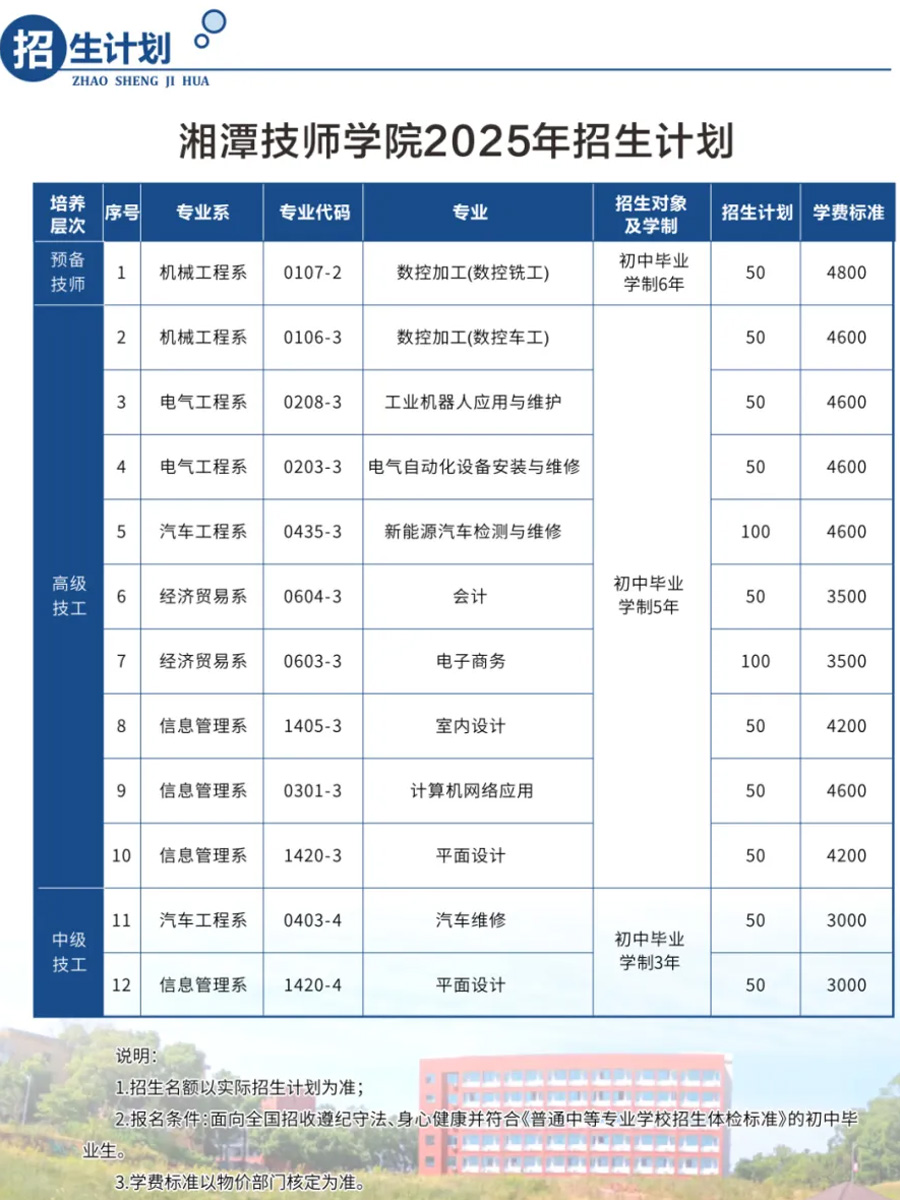 湘潭技師學(xué)院 招生專業(yè) 會計 電子商務(wù) 旅游服務(wù)與管理 物聯(lián)網(wǎng)應(yīng)用技術(shù) 平面設(shè)計 汽車營銷 室內(nèi)設(shè)計 數(shù)控加工 汽車維修 工業(yè)機器人應(yīng)用與維護 電氣自動化設(shè)備安裝與維修 3d打印技術(shù)應(yīng)用 新能源汽車檢測與維修 計算機網(wǎng)絡(luò)應(yīng)用 模具制造