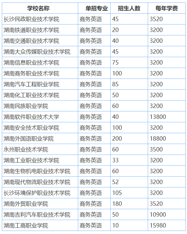 以下是湖南部分大專院校單招開設有商務英語專業(yè),單招競爭壓力小。