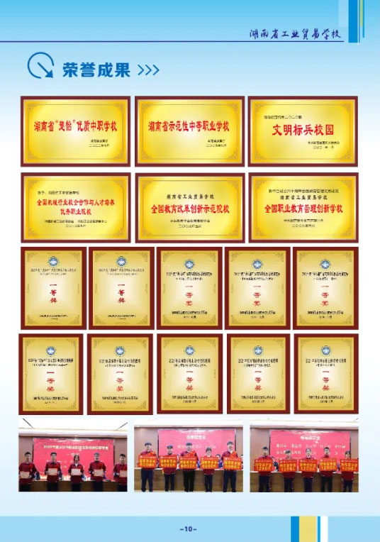 學(xué)校被評為全國職業(yè)教育管理創(chuàng)新學(xué)校、全國機(jī)械行業(yè)校企合作與人才培養(yǎng)優(yōu)秀職業(yè)院校、省直文明校園、湖南省學(xué)生管理先進(jìn)單位、長沙市畢業(yè)生就業(yè)工作先進(jìn)單位、長沙市雨花區(qū)社會治安綜合治理先進(jìn)單位。